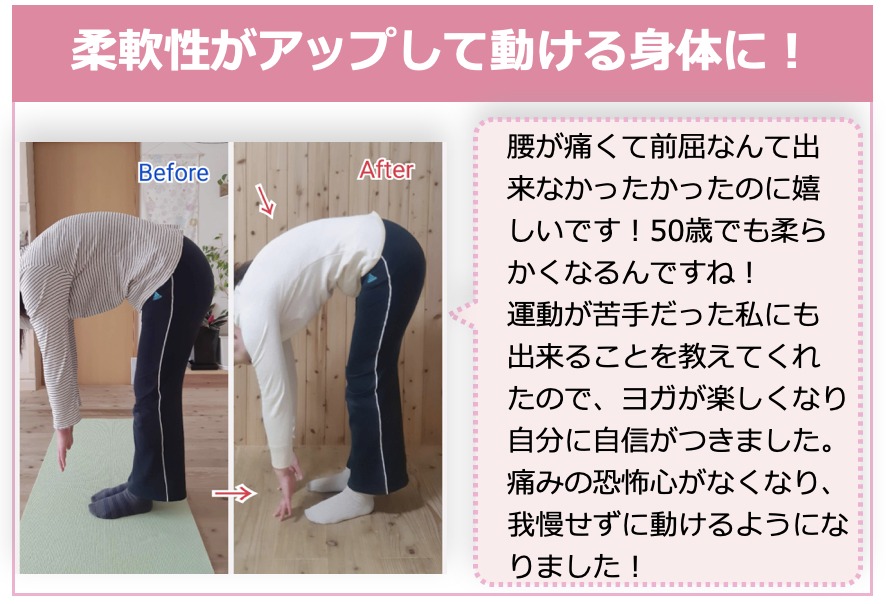 更年期の症状が出てきて ヨガの経験は全くなかったのですが 私が抱えていた不調や悩みは、