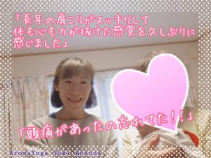 体験アロマヨガセラピーを受けてから、頭痛があったことも忘れ、解消されました!