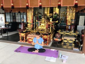 先日、仏教青年会の会長様からのご依頼で、お寺でヨガ講習会を行いました。